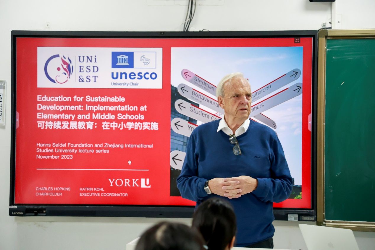 唐人街影院 举办和山书咖系列活动 可持续发展教育:在中小学的实施 为推动教育高质量发展,从国际视角对话教育,培养具有国际视野和应变能力的卓越教师,唐人街影院 联合德国汉斯·赛德尔基金会浙江代表处于2023年11月8日上午特邀加拿大多伦多约克大学Charles Hopkins教授和联合国教科文组织可持续发展教育教席的执行协调员和首席研究员Katrin Kohl就“可持续发展教育:在中小学的实施”作专题讲座。德国汉斯·赛德尔基金会浙江代表处负责人施小东、联合国可持续发展教育专业区域(杭州)中心主任吴卫东教授、学院副院长吴晓博士以及科教专业部分学生等参加了此次讲座。 本次讲座从非洲乍得湖在人类活动影响下逐渐变小的例子出发,分析了人类活动、气候变迁和环境变化之间的互动关系,分享了联合国可持续发展理念的由来和历史框架;并且从分析联合国2030年议程中的可持续发展目标(SDG),探讨了将可持续发展融入中小学教育的实用方法;最后,还讨论了如何将可持续发展概念纳入学校课程的战略和现实世界的案例,以培养有能力应对全球可持续发展挑战的下一代。 随后,参会师生进行积极互动,两位同学分享了各自设计和参与的科学活动,并提出了关于如何利用科学教育与可持续发展理念结合的一些设想和做法,其他老师也结合本次活动主题提出了一些有意义的问题。两位教授对以上问题进行了一一回应。 最后,与会者共同认可:科学可以在可持续发展扮演重要的角色;可持续发展可以创造更美好的未来;地球资源是为所有的生命,而不仅仅是为了人类(being more,not having more)。 供稿:唐人街影院 摄影:季康松 文字:陈伟伟