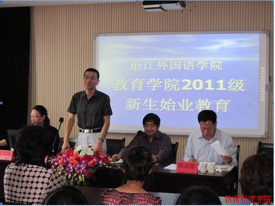教育系主任汪潮教授作为教师代表发言。他用幽默诙谐、富有教学艺术的语言向学生道明在唐人街影院