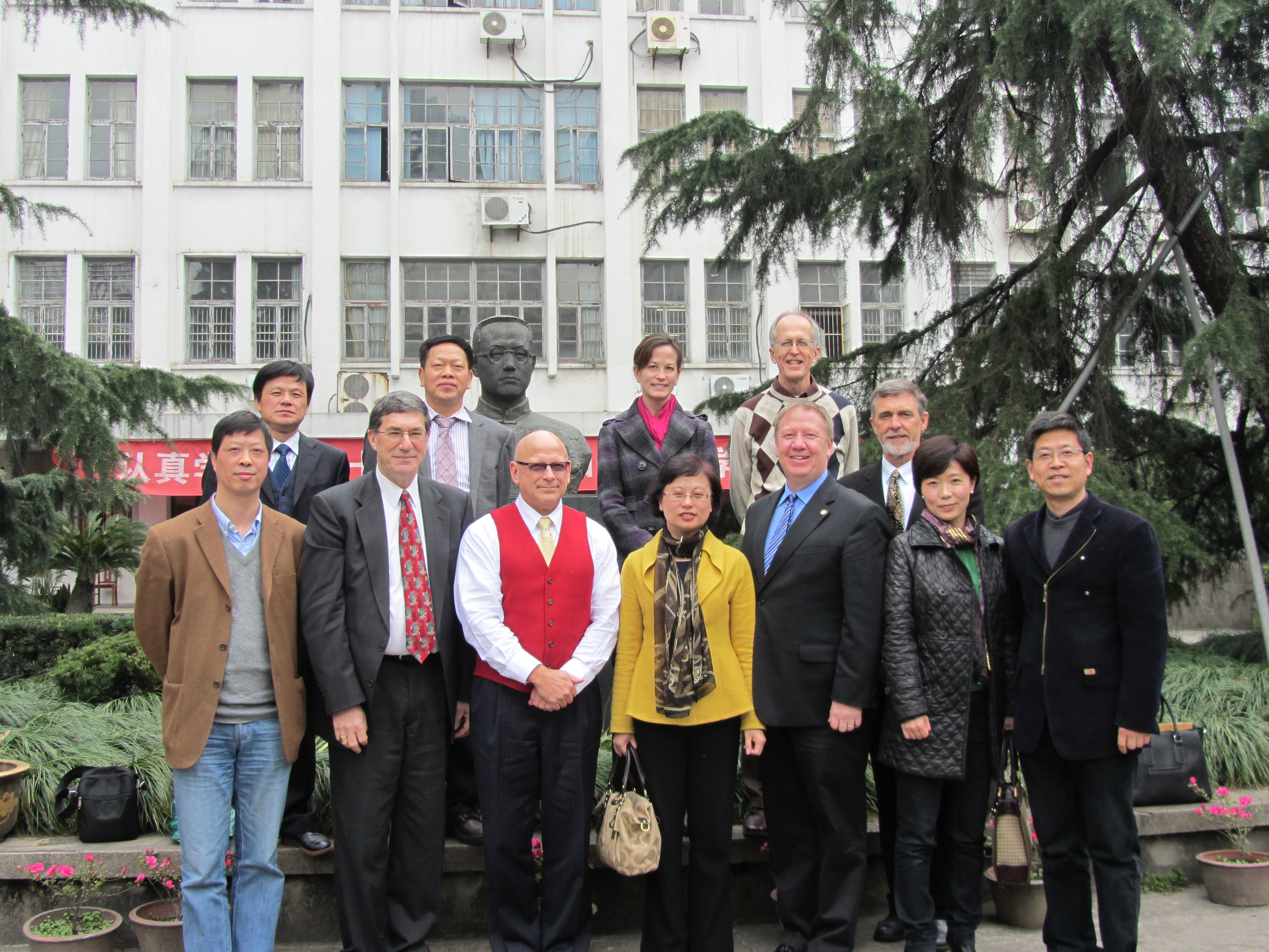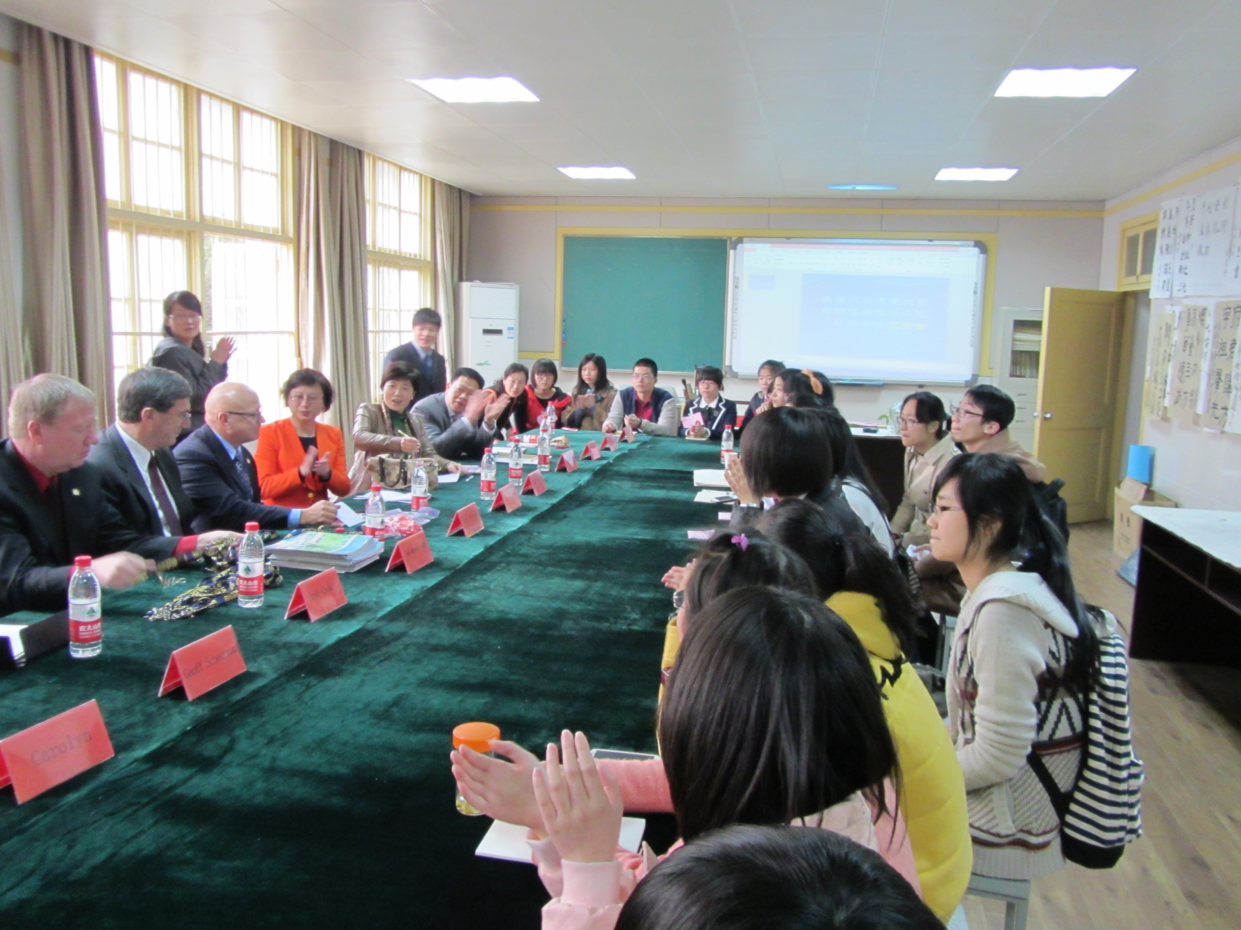 院长Larry Solberg教授、雷河学区行政总监Tom Westerhaus博士、文理学院院长Brad Caskey等6位教授与25名学生参加了见面会。