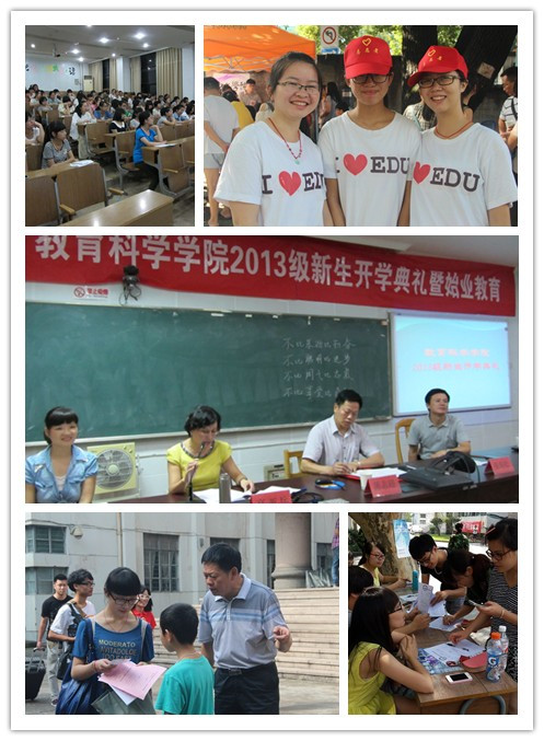 9月14日,教育科学学院迎来了2013届新生。报到当天,院系领导、辅导员和迎新志愿者们齐心协力、统筹规划,圆满完成了新生引导、接待、注册等工作。