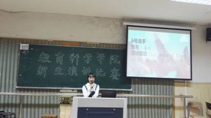 通过新生演讲大赛展现了教育科学学院新生创新能力和自身的高思辨水平素质,锻炼了新生敢于表达自己展现自己的勇气。