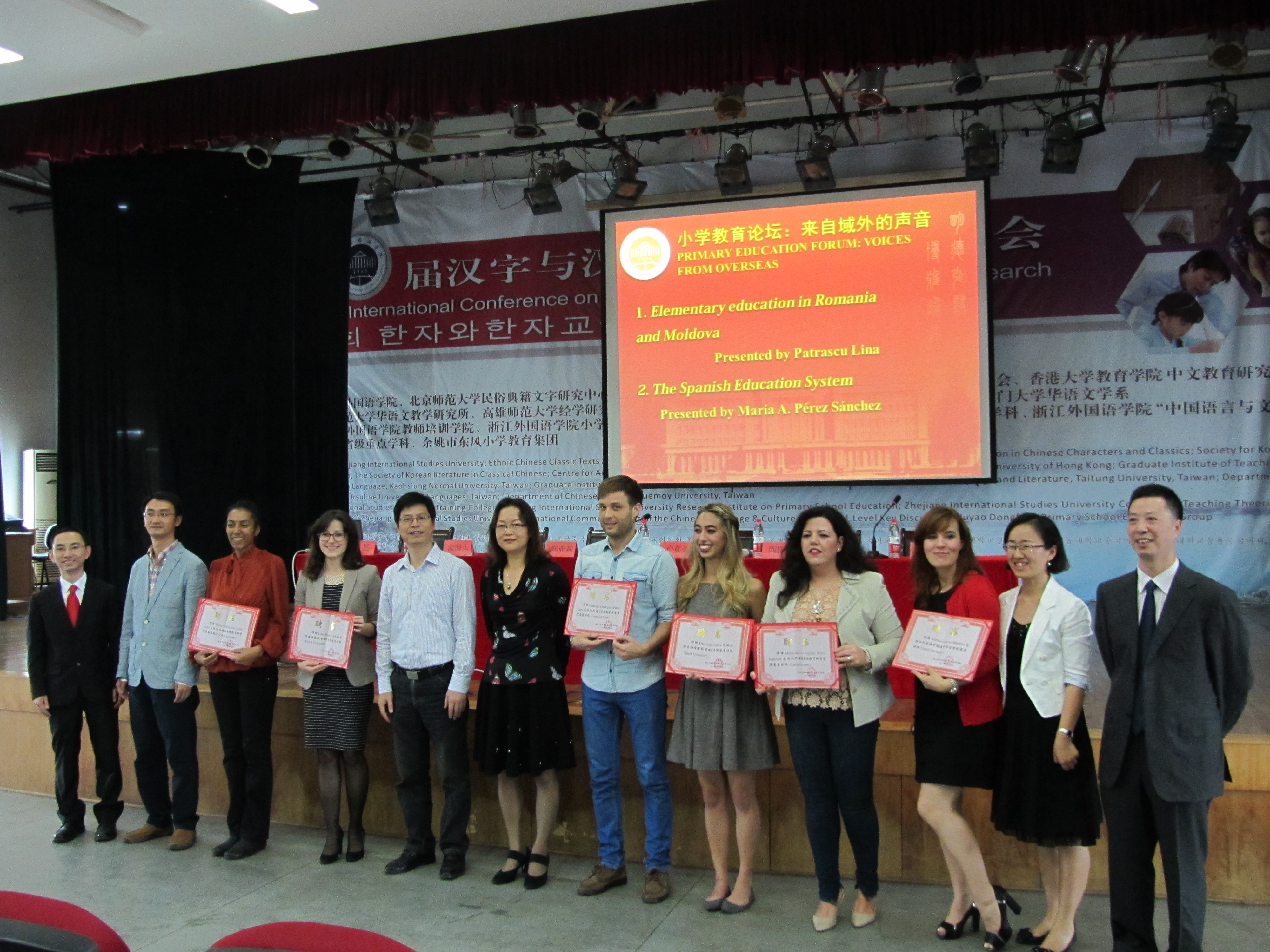 郑亚莉在讲话中指出:教育科学学院与国际合作交流处合作,联合举办“小学教育论坛——来自域外的声音”系列讲座,邀请众多外籍文教专家介绍各国的小学教育情况,这是推进学校教育国际化的有益的尝试,也是加强国际理解教育、开拓国际视野的有效举措。我代表学校党政领导向论坛的顺利举办表示热烈的祝贺!信息技术的发展使世界变成了一个地球村,知识经济时代的到来使教育国际化成为一个必然的趋势。为未来社会培养教育人才的教师教育更需要有一种开放的心态、全球的视野;了解不同国家的教育制度和教育文化,吸收借鉴其他国家基础教育的先进经验,可以更好地培养具有国际视野、家国情怀、一专多能的卓越小学教师。我相信,这一系列讲座的举办,必将大大推动我校教育国际化的进程;我希望,经过外籍文教专家和教育科学学院及相关部门的精诚合作,这一系列讲座能够成为学校教育国际化的一个优质品牌,成为我校教师教育一道亮丽的风景线。我希望各位同学,要珍惜这难得的机会,多学习、多思考、多互动,以虚心的态度、开放的精神、严谨的学风、良好的素养要求自己,为自己未来的专业发展打下坚实的基础。讲话结束后,郑亚莉启动了小学教育论坛系列讲座按钮,并与教育科学学院负责人为外籍文教专家颁发了聘书。会上,国际合作交流处负责人介绍了外籍文教专家的情况,教育科学学院负责人介绍了创设小学教育论坛的目的和系列讲座安排的方案,明确每月第三周的星期四下午举办讲座。启动仪式后讲座开始,外教专家Lina和María分别作了关于摩尔多瓦和罗马尼亚小学教育情况、西班牙小学教育体系的报告,并与在场学生进行了广泛而热烈的互动交流。