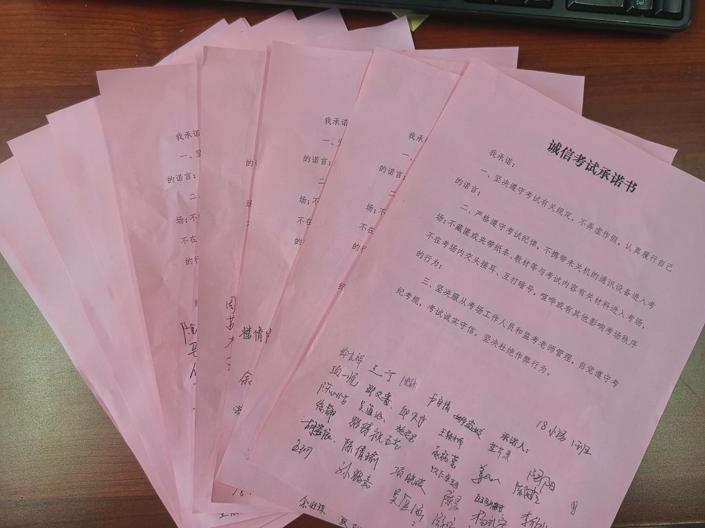 全体学生起立进行了庄严的考前宣誓,并以班级为单位签署了《诚信考试承诺书》。