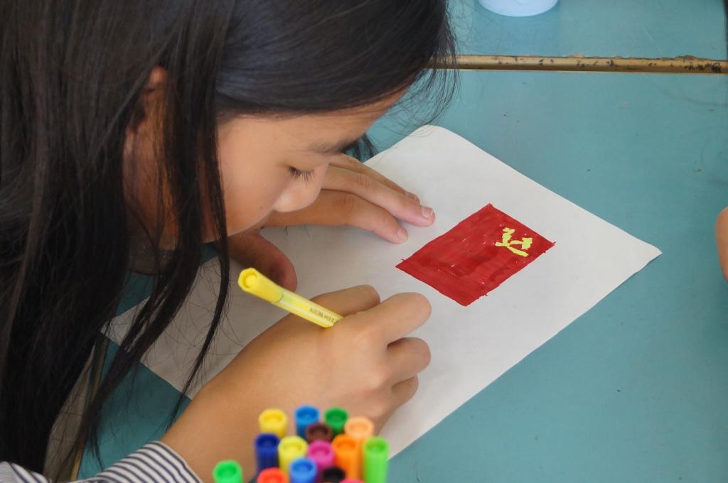 学生认真绘制党旗
