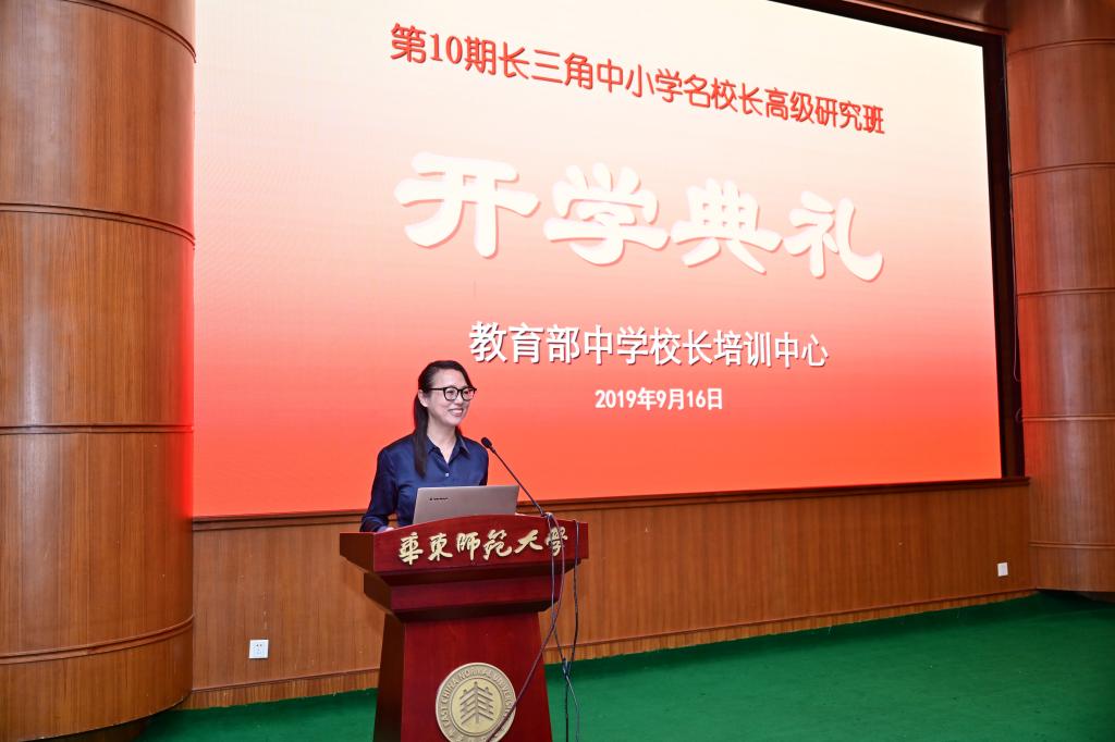 9月16日,第10期长三角中小学名校长高级研究班开学典礼在华东师范大学教育部中学校长培训中心举行。副校长、省师干训中心主任张环宙、省教育厅教师工作处处长庄华洁、华东师范大学副校长戴立益、上海市教育委员会副主任朱永智、江苏省教育厅巡视员朱卫国、安徽省教育厅师资处副处长马家松,及四省(市)专家共同出席了开学典礼。