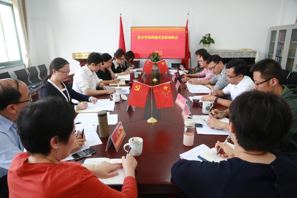 跨越式发展调研会。学院领导班子和系主任参加会议。