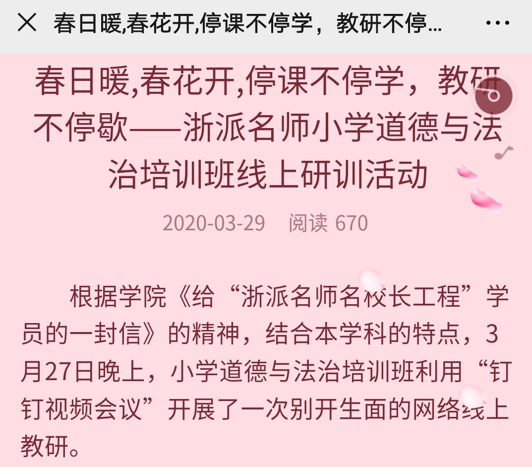 第八期“浙派名师名校长培养工程”小学道德与法治名师班在第一次线上培训后制作的美篇,记录培训过程。