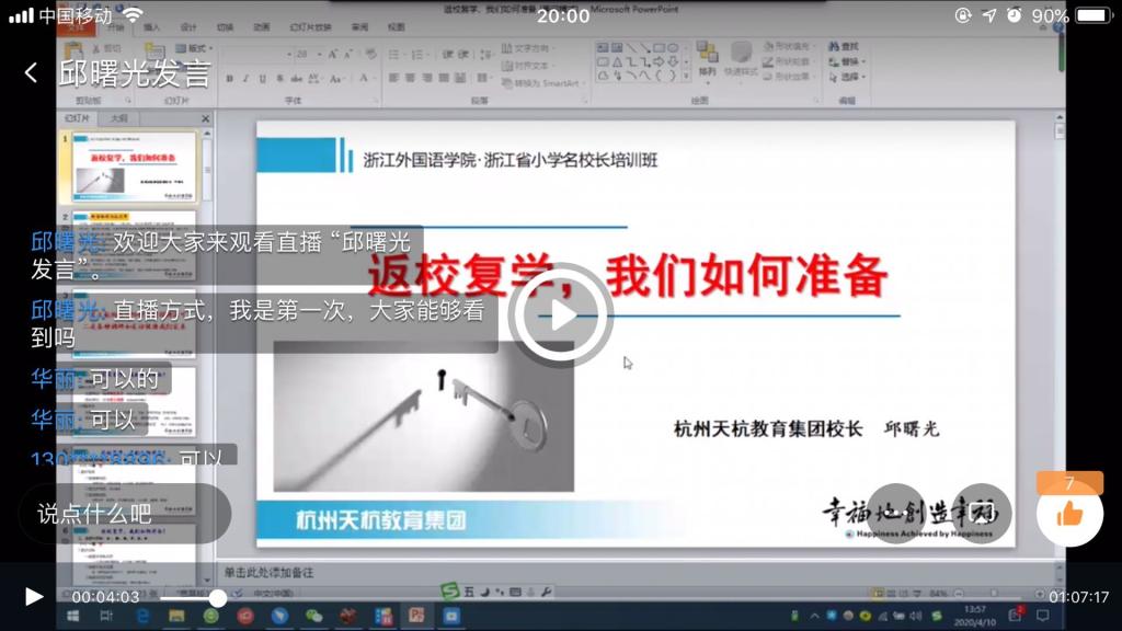 第七期小学名校长采用直播方式分享“返校复学,我们如何准备”