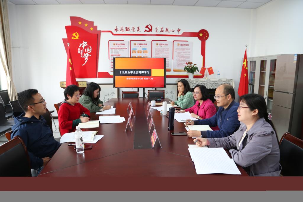 首先高亚兵书记向理论中心组同志解读了习近平总书记在党的十九届五中全会上所作的工作报告和重要讲话精神。她强调一要提高政治站位,认真抓好全会精神的学习宣传和贯彻,教育引导广大党员把思想和行动统一到全会精神上来;二是要继续奋斗,要深刻认识“十四五”时期发展重点任务,更好地将国家重大战略融入学校学院内涵式发展的需求中,立足岗位,把自身的前途命运与祖国的前途命运紧密联系在一起。