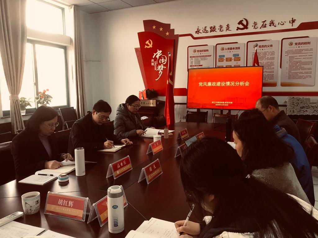 召开党风廉政建设情况分析会,李安副校长应邀参加会议并作指导,学院全体党政领导班子成员、学院党总支委员参加了此次会议。