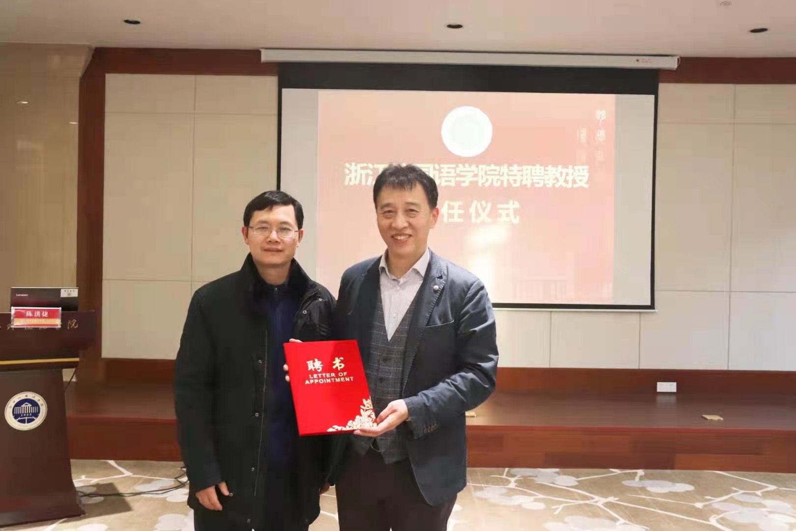 副校长李安和校资深教授、国别和区域研究中心主任、北京第二外国语学院原校长周烈分别为陈洪捷颁发特聘教授、德国研究中心主任聘书。李安和周烈对陈洪捷教授的到来表示热烈欢迎。