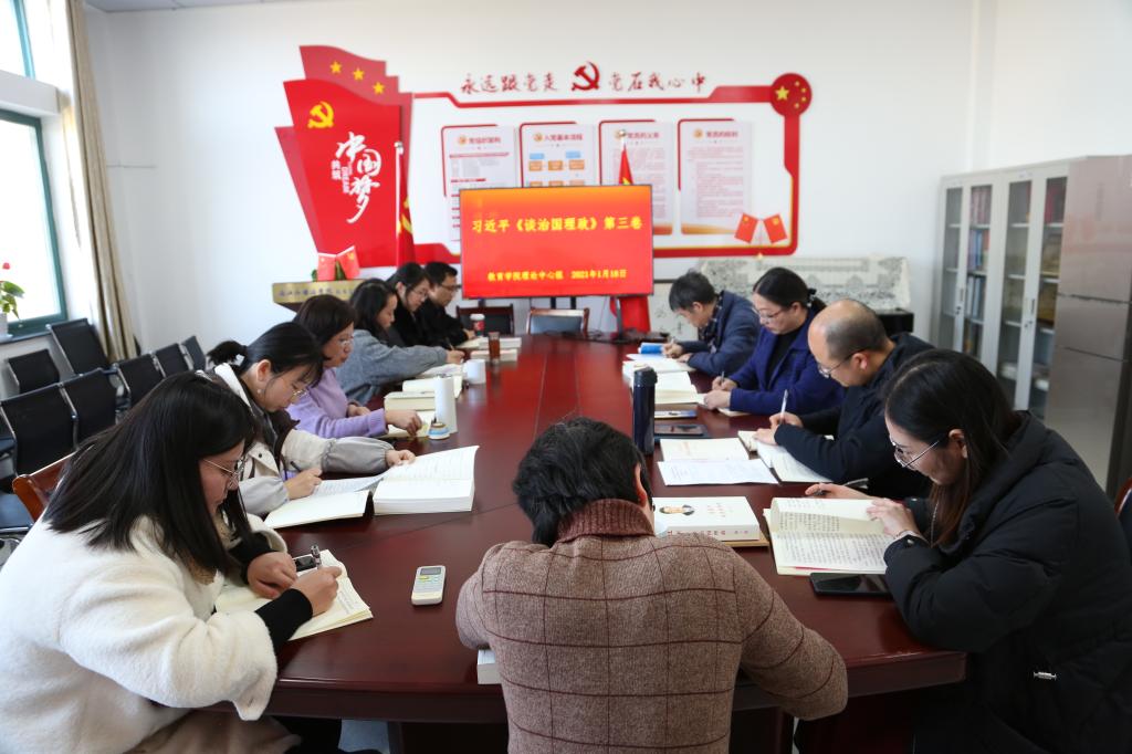 1月18日中午,我院党总支理论学习中心组开展了《习近平谈治国理政》第三卷专题学习会。会议由院党总支书记高亚兵主持,理论学习中心组全体成员、各支部书记参加了学习会,并结合工作实际作了学习交流发言。