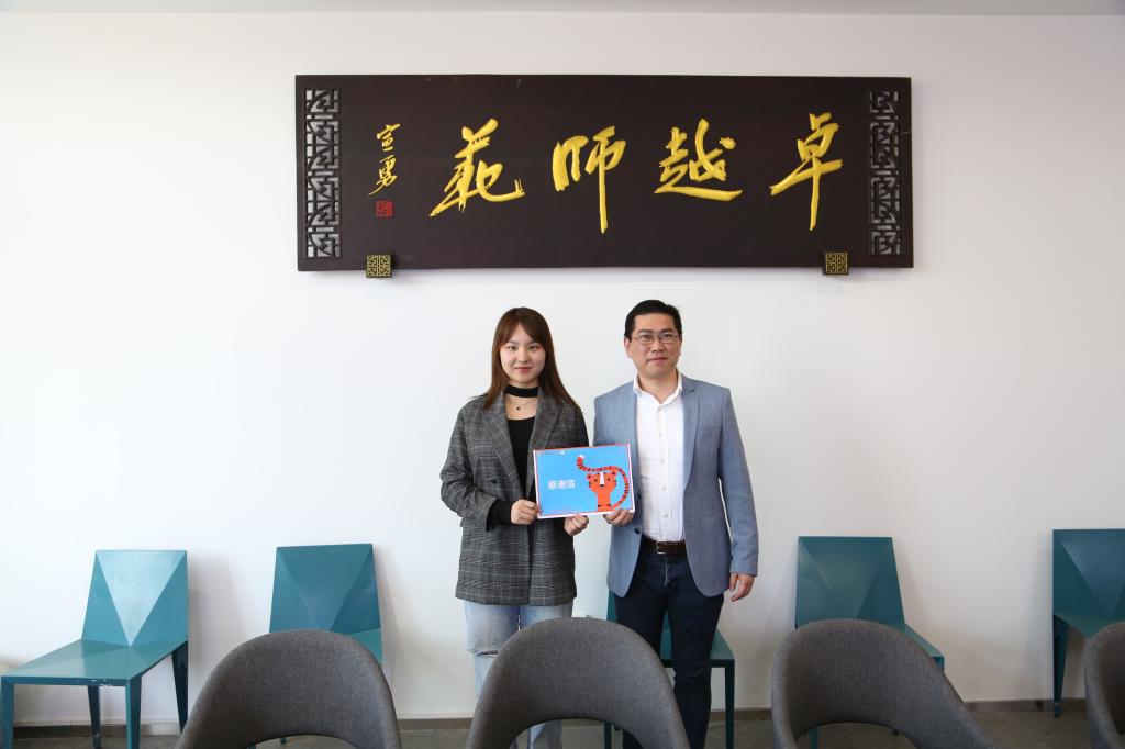合作仪式上,吴院长为宁波欧蒙教育用品有限公司授牌“社会实践基地”,张总则为学前教育专业的学生赠送材料。