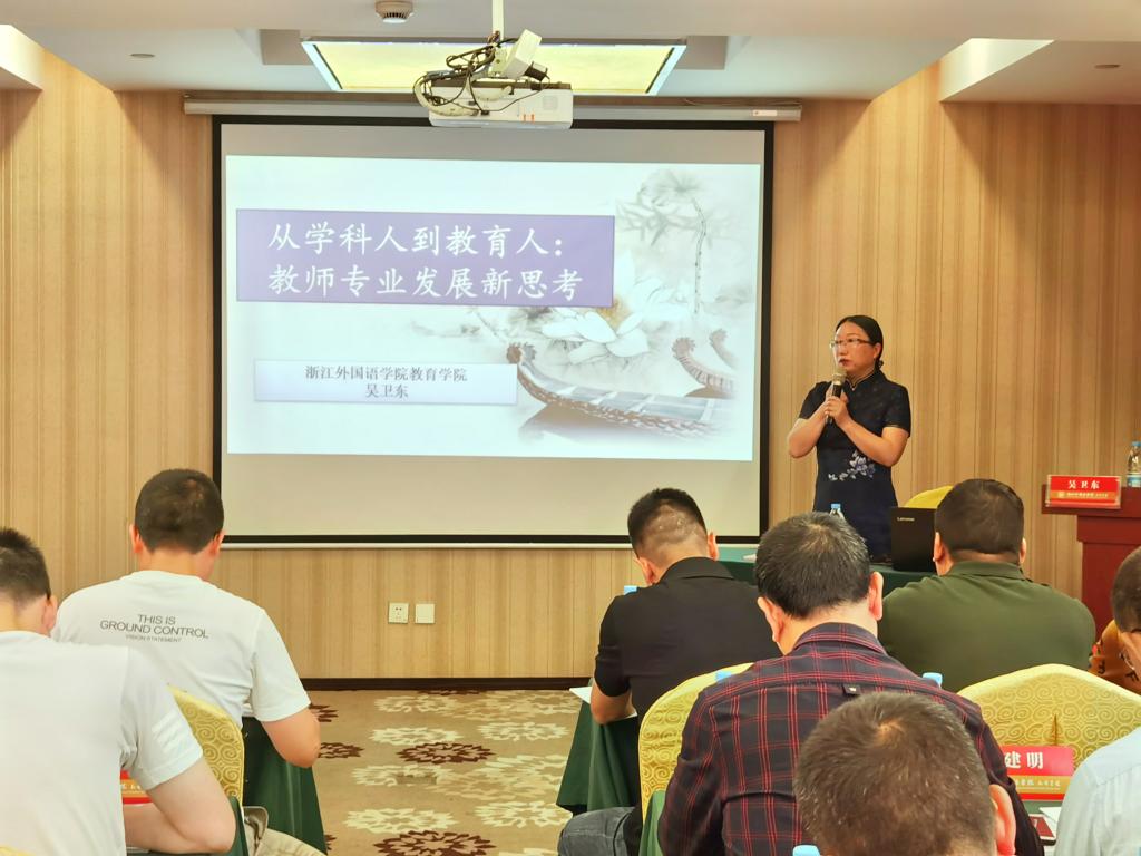 典礼后,吴卫东教授给学员带来题为《从“学科人”到“教育人”——教师专业发展新思考》的专题讲座。报告深入浅出,从核心素养概念出发,引经据典,贯古通今,金句频出,受到参训学员一致好评!