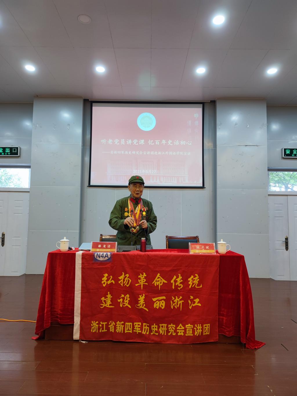 随着党史学习教育扎实深入开展,5月27日,我院联合中文学院、图书馆,邀请浙江省新四军历史研究会宣讲团进校宣讲党课。浙江省新四军历史研究会宣讲团常务副团长程宇航,92岁八路军老党员郝龙清分别作两场讲座,唐人街影院