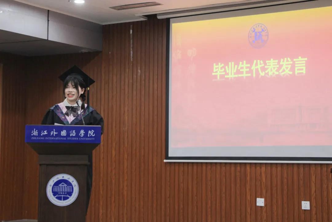 作为毕业生代表,17小教1班唐小芬向老师们表示了衷心的感谢。在教院“学高为师,德高为范”的院训氛围下,她克服困难、成长良多。在老师们的倾囊相助下,她茁壮成长,无悔四年。她难忘卓越示范班“卓尔不群,越而胜己”的精神,也牢记一份“恰同学少年,风华正茂”的校友情深。她希望教院学子都能做胸怀大志、脚踏实地、德才兼备、勇于创新、敢挑重担的人,并祝愿老师们身体健康、万事胜意,祝同学们前程似锦!