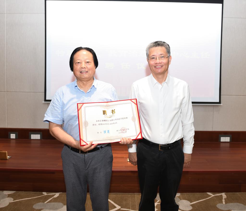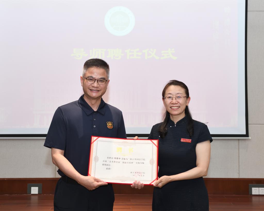 特聘教授、教育治理研究中心主任聘书。孙绵涛对我校的重视和支持表示感谢,他指出“四个面向”的培养体系和课程体系架构非常严谨深刻,具有普世意义。今后工作中将不负重托,尽己之力建设好教育治理研究中心,做好学习员、服务员和研究员,把中心办出浙江特色,在中国有一定的影响,在国际上有一定发言权的教育智库和重点教育研究基地,为实验班贡献全部智慧和力量。