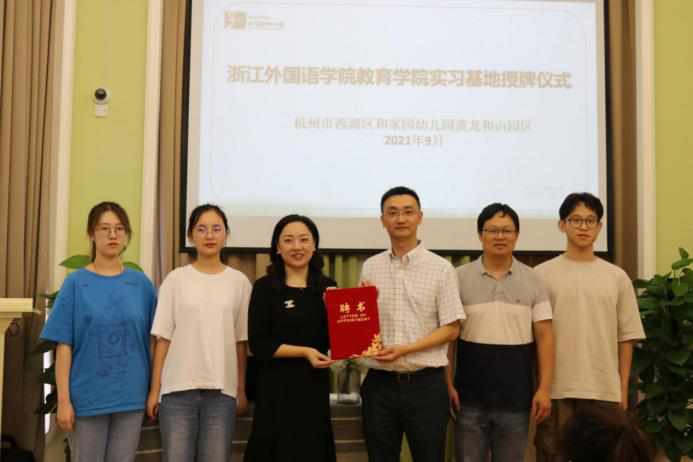 学前教育系师生赴杭州市西湖区和家园幼儿园,开展2019级学前教育专业学生新学期全实践活动,以及党团志愿服务基地、教师发展学校挂牌共建活动。学院党总支书记姚旻教授、副院长王琳璞,和家园幼儿园党总支书记俞岚、园长李乾出席活动。