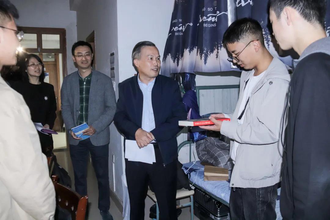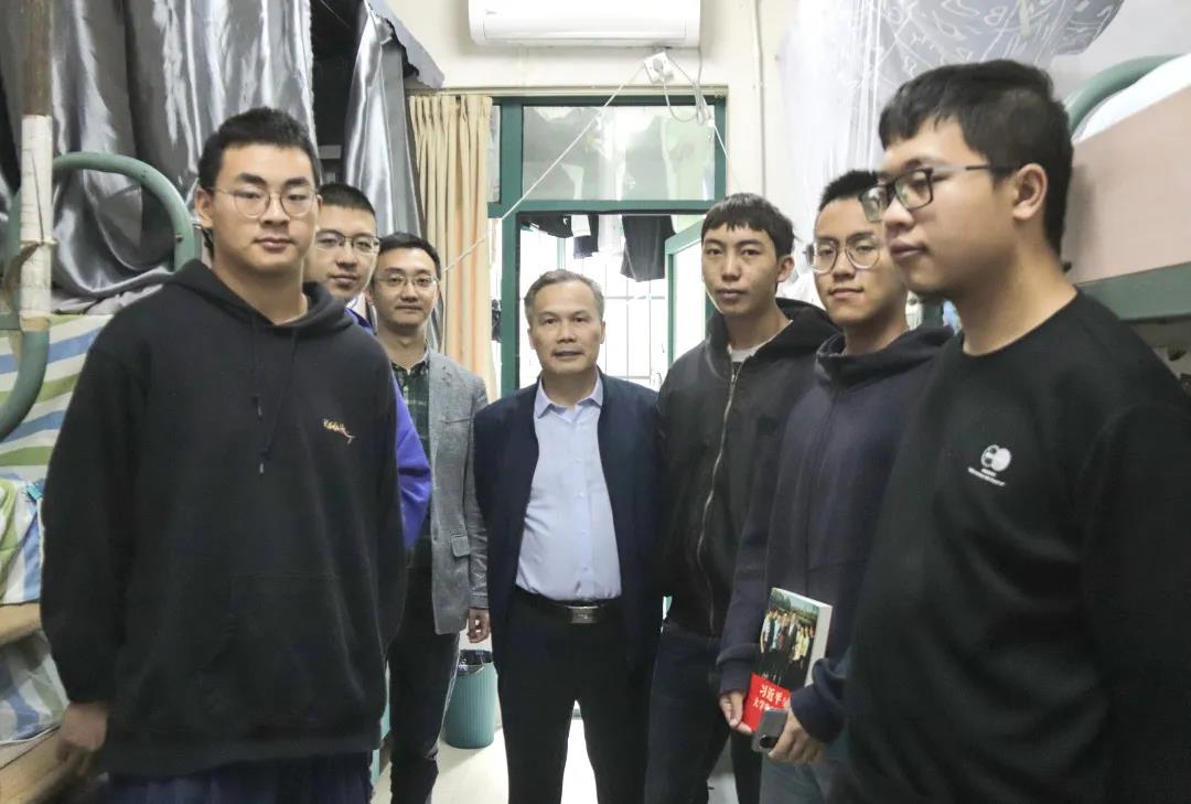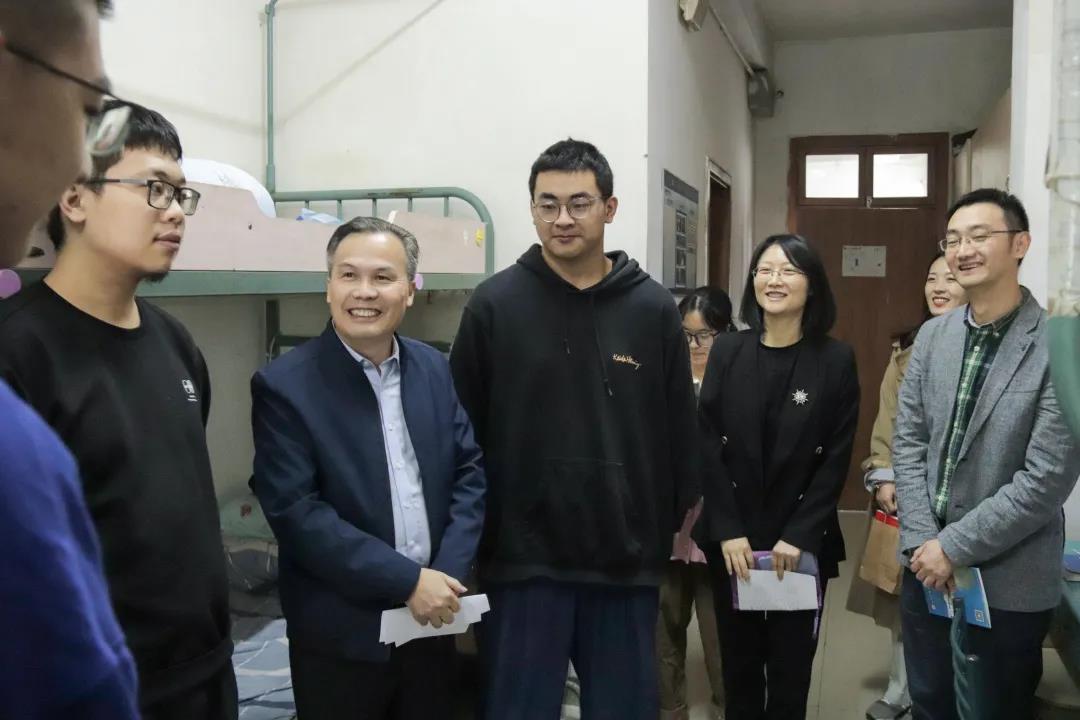 在宿舍内,赵文波与同学们亲切交谈,关切询问同学们在校期间的学习、生活情况,了解同学们的兴趣、爱好,关心同学们的困难困惑,叮嘱同学们努力学好专业知识的同时要照顾好自己,保持身体健康,全面发展。师生共同畅想着充实的大学生活,现场气氛轻松愉悦。