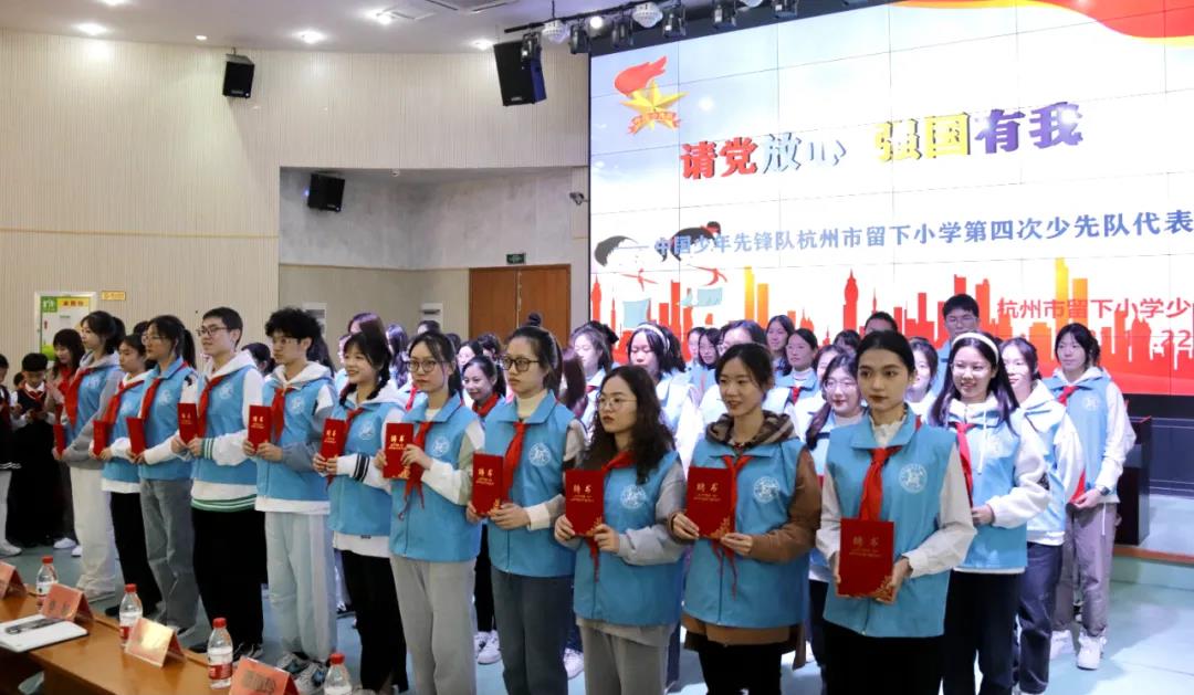 党团志愿服务基地——留下小学第四期红领巾学院开班。留下小学校长孔庆根、党支部书记郑杭明、副校长潘惠玲,学院党总支副书记李娟、院团委书记杜颖出席,红领巾学院的小学员们以及我院志愿者参加开班仪式。