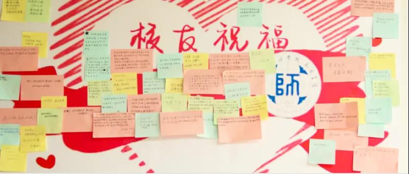 校友返校日当天,学院为返校校友们准备了学院吉祥物“育育”和咖啡券;制作了爱心留言板,校友纷纷留言,写下对学校、对学院最真挚的祝福。围绕校友返校主题,学院还精心制作了公众号推送,邀请未到场的校友线上共赏学院发展近况。
