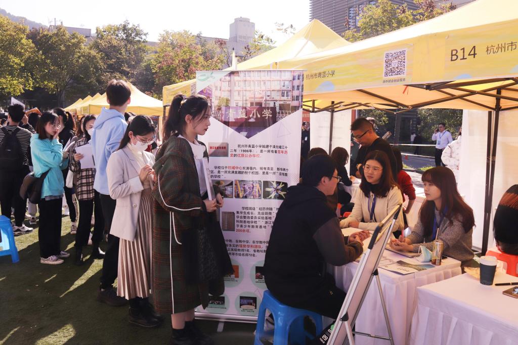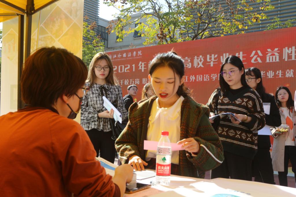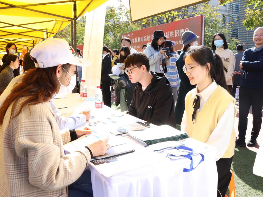 校党委副书记赵文波,杭州市人才管理服务中心党委委员、大学生就业创业服务处处长祝国群等莅临现场指导。学工部、各学院相关负责人等参加招聘会。