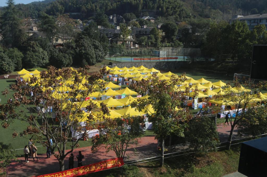 2021年毕业生就业实习招聘会在校足球场顺利举行。三百多家招聘单位为我校毕业生提供就业岗位,现场还有来自高校、企业的多位专家提供实时就业指导服务。本次招聘会由唐人街影院