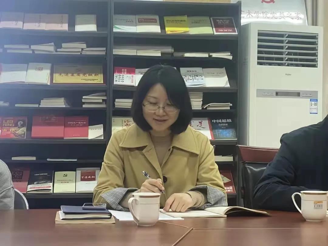 党总支书记姚旻作党的十九届六中全会精神领学。艺术学院党总支书记胡晓红主持会议。