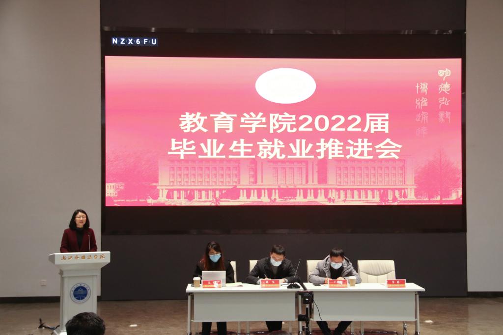姚旻对2022届毕业生就业形势进行分析研判,指出在民办教师回流、杭州区域规划的调整下教师编制缩减、“双减”政策下就业渠道缩减的背景下,毕业生就业形势严峻。他通过对学院2021届毕业生就业率、就业去向等就业情况的分析,以及卓越师范班的就业数据对比,进一步明确了就业工作的重难点,对与会教师与学生提出要求,希望大家携手努力,充分整合各方有利资源,进一步构建完善就业工作网络,有力推进2022届毕业生就业工作。