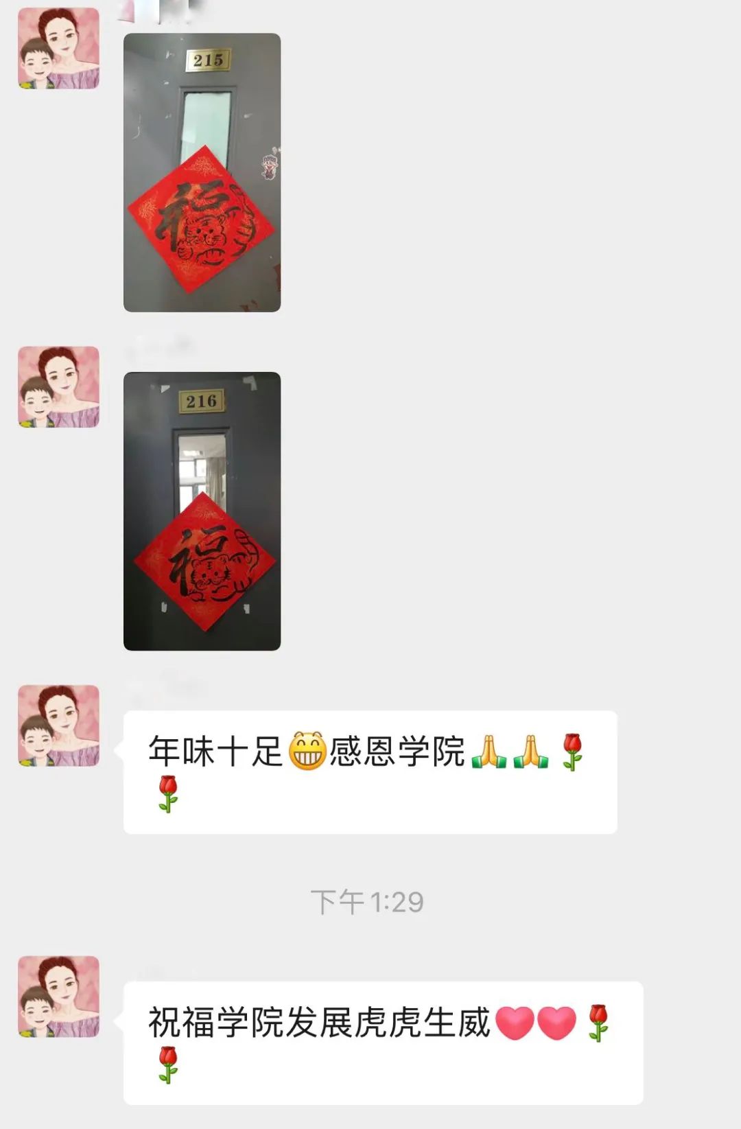 教职工们在看到这温馨的祝“福”时,也有感而发。他们不仅对学院的新年祝福表达了感激,更是表达了对学院“更上一层楼”的美好期盼。