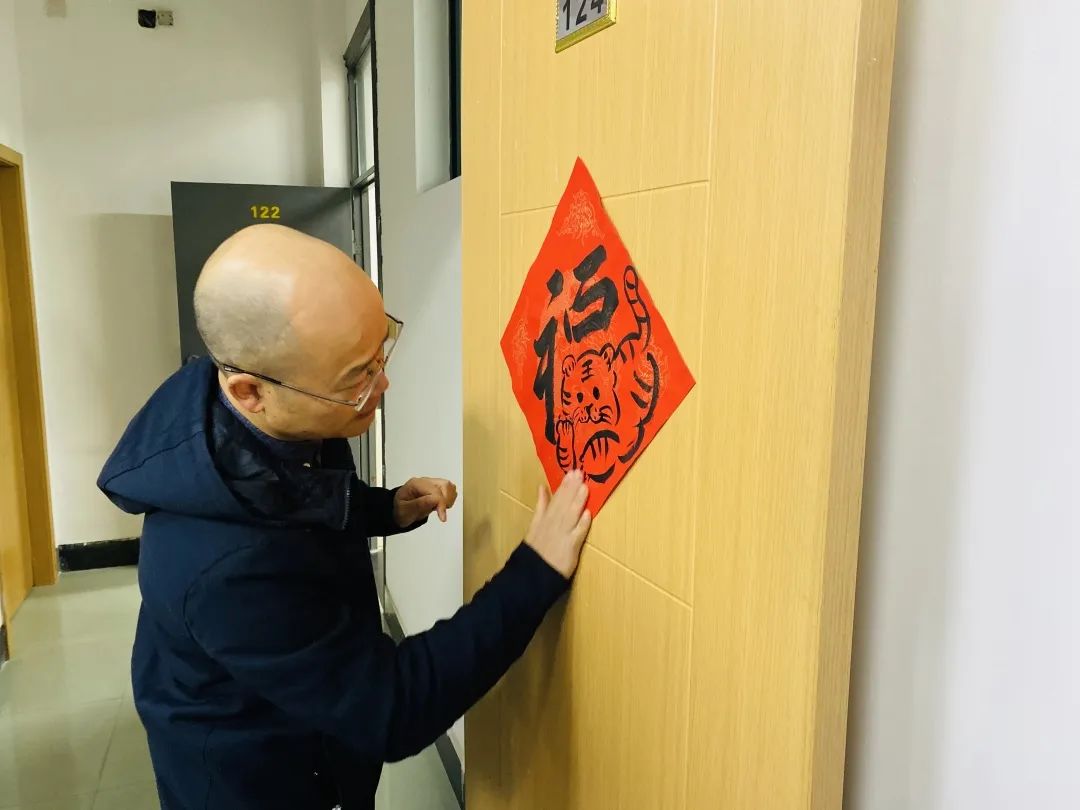 2022年第一天,每间办公室也都有了崭新的面孔。可爱有趣的“小老虎”和充满古色古韵风采的“福”字书画登上了门,映入眼帘的尽是新年新气象的红红火火。