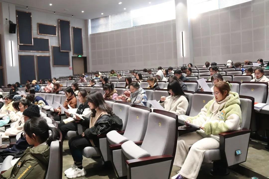全体学生现场宣誓,承诺诚信应考。专题教育结束后,李娟为同学们答疑解惑,并向同学们介绍诚信考场考试流程。