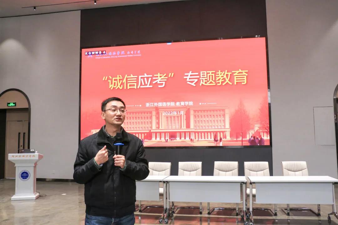 冯翠典以“诚者,天之道也;思诚者,人之道也”劝诫同学们做自己的监考老师,努力成为内外相应、言行相称的人,也祝愿同学们考出水平,考出风貌,考出浙外学子的精神。