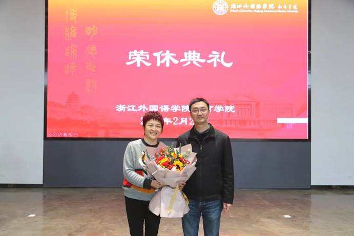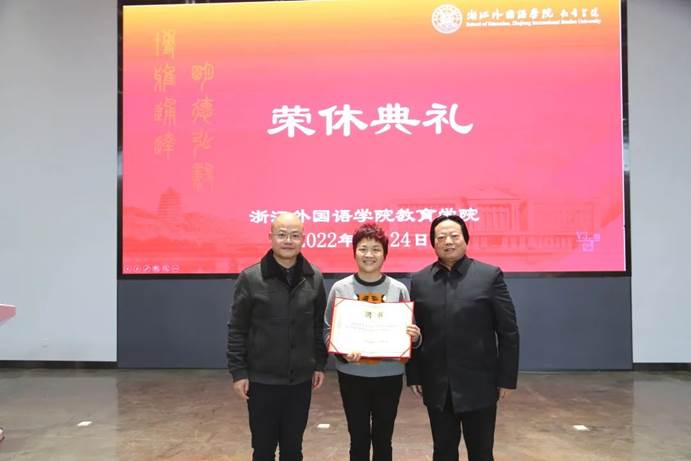 荣休典礼上,何伟强为蒋莉老师致荣休寄语,党总支书记姚旻为蒋莉老师送上鲜花,教育治理研究中心主任孙绵涛教授为她颁发唐人街影院