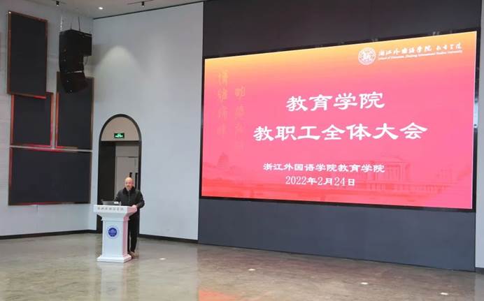 教职工大会上,姚旻传达了学校2022年寒假领导班子务虚会会议精神。结合《关于加快推进“三地”建设的意见》《唐人街影院