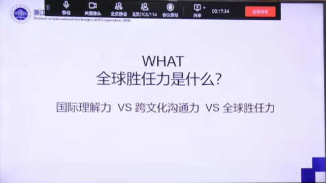 讲座初始,陶老师从“全球胜任力是什么”“如何提高全球胜任力”“为什么想当老师”三方面引入,详细阐释了“全球胜任力”的4个关键要素。在分享个人学习、工作经历时,陶老师讲述了全球胜任力对于教师的重要性,还讲述了党员身份的光荣性与赤诚报国之心,她强调在国家发展、走向强大的历史时期,同学们要有家国情怀,无论职位高低,都要心怀祖国,并提出四点建议:欣赏需要知识和技能;分析需要思维和态度;互动需要沟通和协作;行动需要自觉和责任,并寄语学员们保持自己的初心,成为有国际视野、多元文化,和世界青年为伍的人民教师。
