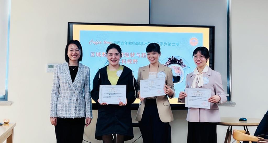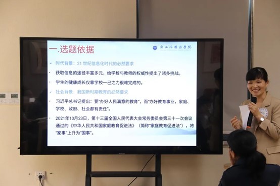 陈玉玲副教授、周丽华副教授、王佳博士三位教师,结合自身研究经历,围绕学校教师专业发展、家校社共育、区域教育治理中的政府治理能力提升等主题分享研究成果。