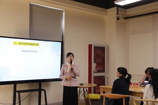 陈玉玲从研究现状、研究趋势两个角度切入,围绕教师专业发展研究经历的几大转向深度剖析当前研究趋势,并提出研究中有待解决的焦点问题。周丽华重点阐述家校社共育的研究现状、研究不足和未来研究趋势,并进一步解读了家校社共育的内涵、政策及其应用。王佳讲解如何锁定研究领域,形成自己的研究坐标,凝练了“守正、创新、耕耘”的研究策略。之后,在场的青年教师与分享人进行了深入交流。