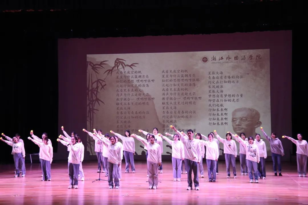 婉转的曲调,厚重的音符,铿锵的词句。浙外学子用一曲《星辰大海》唱响新时代。陶行知先生的崇高精神永存于心,用前辈荣光照亮前行之路。教育事业薪火相传,奋斗之帆从未停歇。吾辈肩负时代重任,必将以坚定的信念和一往无前的勇气接续前行,追寻心中的那片星辰大海。