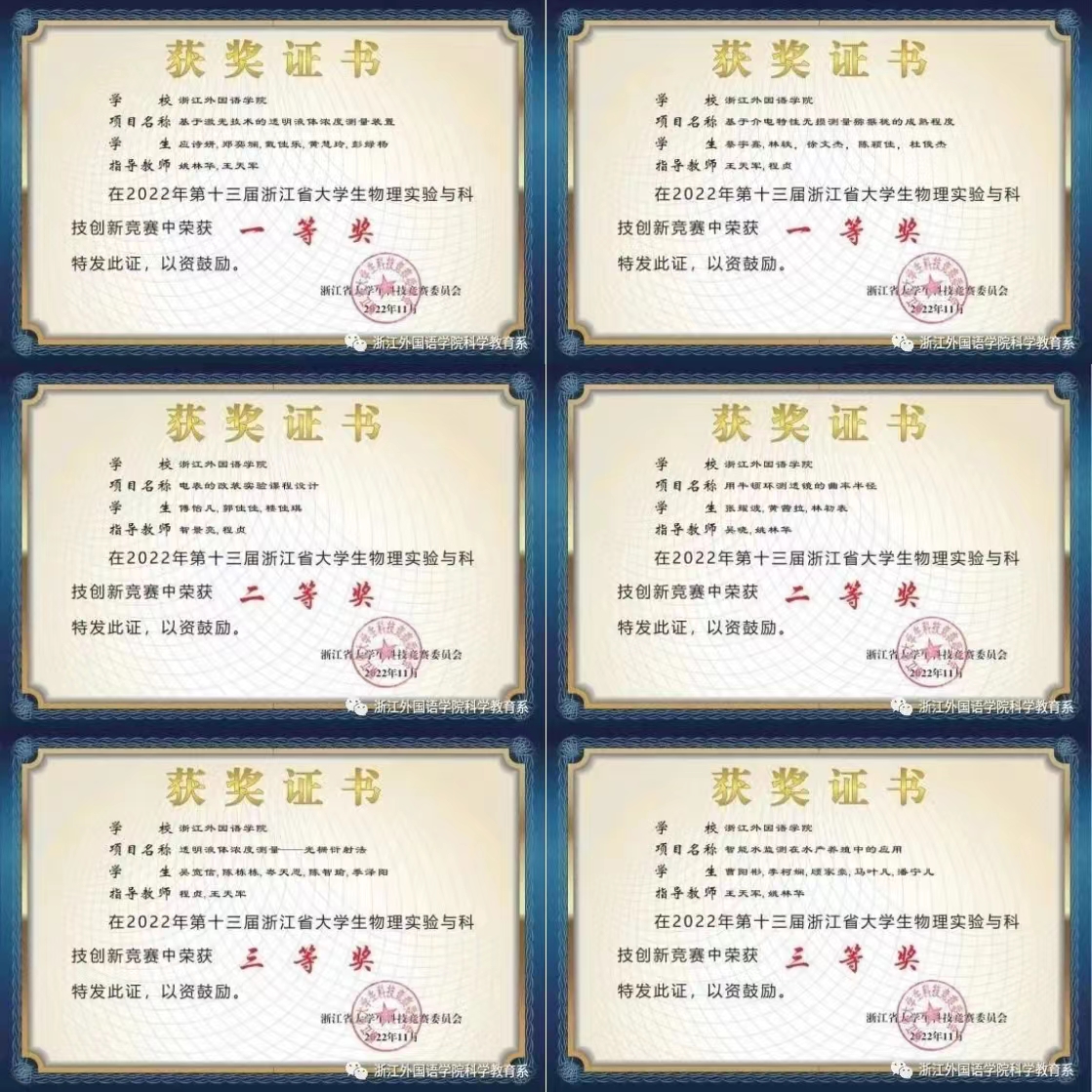 近日,第十三届浙江省大学生物理实验与科技创新竞赛决赛落下帷幕。我院学子喜获佳绩,斩获一等奖2项、二等奖2项、三等奖2项,这也是我校在该赛事上首次斩获一等奖,实现了国家级一等奖零的突破。