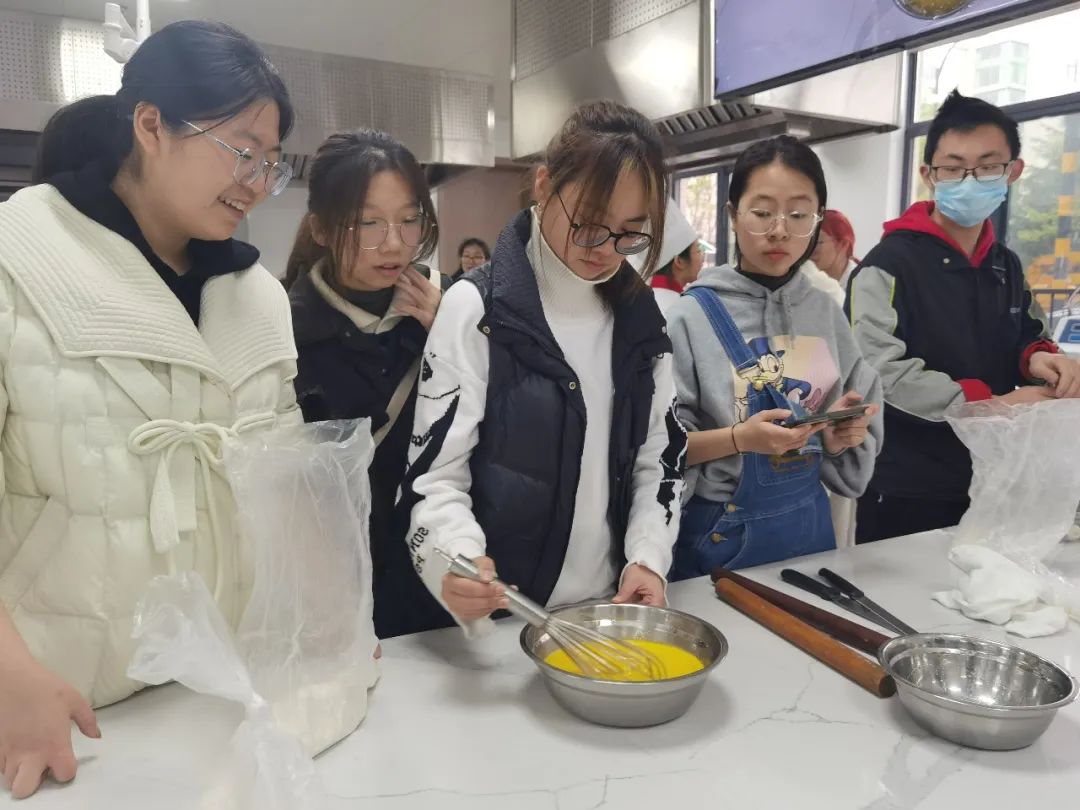 在劳动教育环节,学生干部们进行了烘焙体验。该活动由西湖职业高级中学专业老师全程指导,通过分蛋黄、打蛋清、过筛面粉、搅拌均匀等环节,学生干部们不仅了解了瑞士卷制作的基本原理和技巧,增强了健康营养饮食的意识,还提高了动手能力、团队合作能力,亦体会到了食品的来之不易。