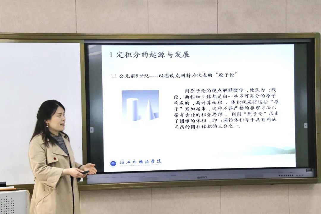 康倩倩老师通过不紧不慢的语速,让观课的老师和同学们理解了定积分的价值,定义,与解决实践问题过程中的微积分的思想方法,并在此过程中展现了人类在数学探究中的孜孜不倦精神,与中国人在数学思想方法中的历史贡献。