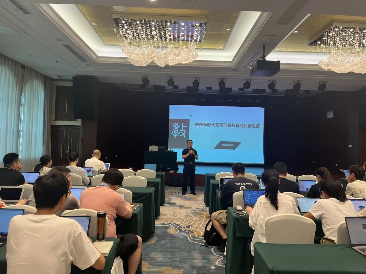 7月18日下午,研修班全体成员聆听了教育部小学校长培训中心常务副主任、北京师范大学校长培训学院院长陈锁明教授《站在时代背景下看教育高质量发展》的报告。陈教授从五个方面展开讲座,从教育高质量发展的内涵出发,分析了教育的现状,提出了教育的困惑,又从新时代之“新”谈起,结合近年来国家关于教育方面的重要文件,阐述了教育的未来。陈院长从生动的案例和视频切入,带领大家进入情景式、参与式学习,充分认识当下我国教育事业取得的成就和不足,希望我们青年干部牢牢把握六个必须坚持,改造世界观与方法论,在工作中守正创新,勇于担当,努力实现基础教育的高质量发展。