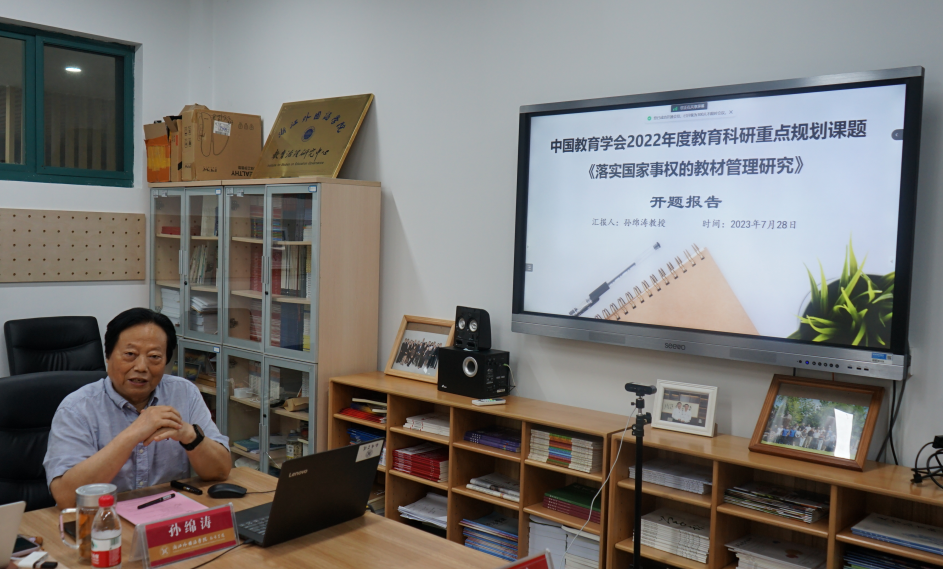 朱婷宣读了中国教育学会2022年度教育科研重点规划课题立项通知。她对孙绵涛教授团队获批重点课题表示祝贺,并希望课题组以问题为导向展开调查研究,形成调查报告和资政建议,服务国家教育决策和一线教材管理。