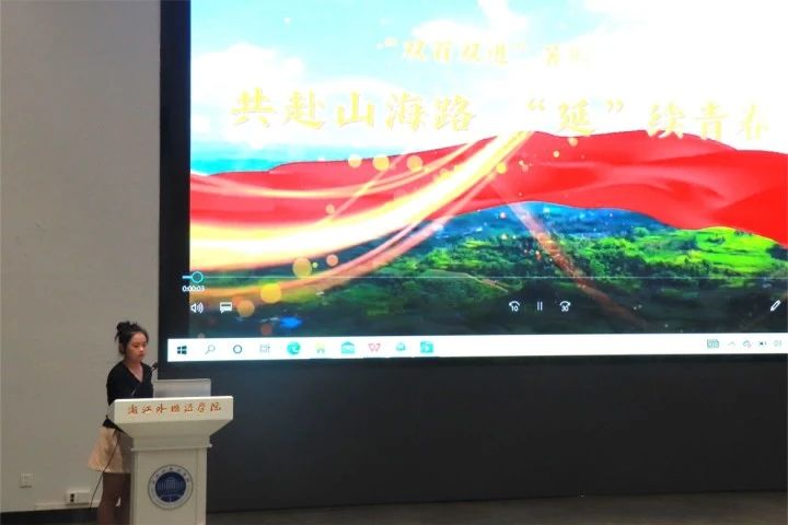 学生会主席团成员、21小教2班徐鑫楠讲述了她所在的“浙外赴梁家河红色精神寻访小分队”,在陕西延安这片红色热土上接受红色精神洗礼,在实践中学真知、悟真谛,进一步坚定理想信念、厚植家国情怀的故事。她分享了团队重走知青路,开展红色精神寻访、送教研学等实践内容,表示通过实践,更坚定了成员们想要成为一名卓越教师的理想信念。祝愿教院新生们笃行不怠,初心如一,在最美好的年华展现出最美好的模样!