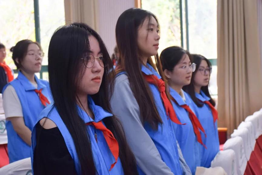 21级学生杨紫灵在少代会上分享了她第一次在留下小学参与志愿服务的经历,这段经历让她体会到教师这份职业身上的幸福感与使命感,同时也支撑着她更好地将自身所学理论与实践相结合。她代表本届校外辅导员表态,学院学子将铭记院训教诲,认真备课、授课,推进留下小学红领巾学院课程的计划性、针对性与创新性发展,为培育有梦想、能实践、敢担当的小红领巾们不懈努力,奉献教院学子的一份力量。
