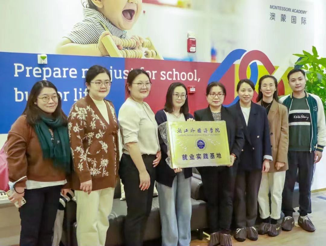 学前教育专业与浙江绿城乐真教育集团澳蒙国际日托中心举行“就业实践基地”签约授牌仪式。学前教育系主任冯翠典、学前系教师张静静、郑孝玲、张帅、贾昊宇、吴昊,澳蒙国际日托中心园长曹婷、人事经理顾绍惠出席仪式。