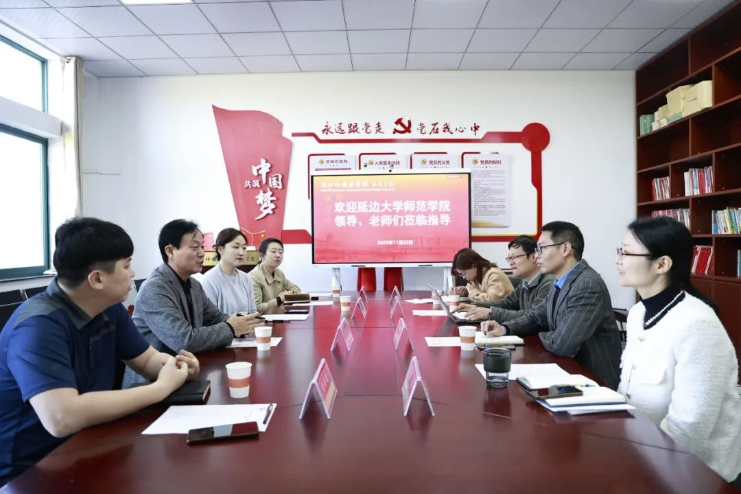 阮建苗书记对郑光日书记一行的到来表示欢迎,对学校、学院情况进行简要介绍。阮书记表示,近年来学院以师范生论证为契机,紧扣高质量发展主题,充分挖掘师范特色,推动学院建设发展实现新突破,希望双方以本次调研考察为契机,进一步加深交流沟通。郑光日书记表示,延边大学师范学院办学底蕴深厚,办学特色突出,双方深化学习互鉴,依托双方特色紧密开展合作交流。