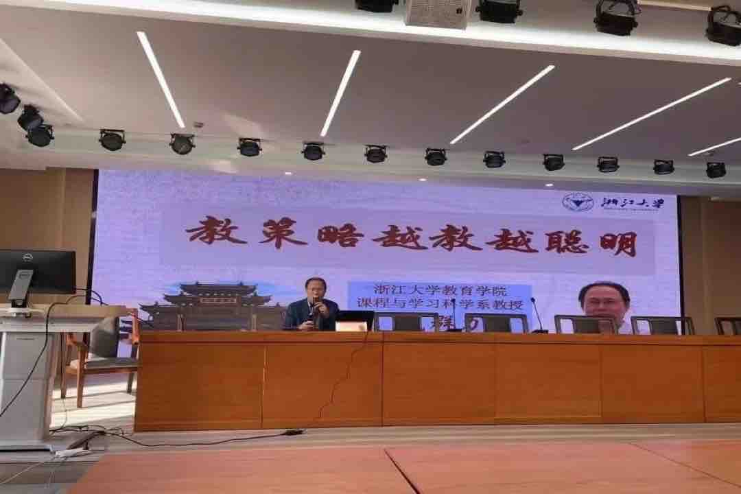 11月24日上午,研修班全体成员聆听了浙江大学教育系副主任,浙江大学教育科学与技术研究所所长,教育部浙江大学基础教育课程研究中心副主任盛群力教授《核心素养落地呼唤“新课型”》的报告。盛群力教授提出“教策略越教越开心,越教越聪明;教事实越教越吃力,越教越笨拙。”盛教授在讲座中指出,所有的问题都包含三个要素:已知,目标与解法。为了打开新课型的解法,盛教授带领大家一起分析现有的课型,要学生学会迁移,分析借鉴学习教学目标二维法,通过问题解决模型希望每个老师都能成为课堂上的高手。