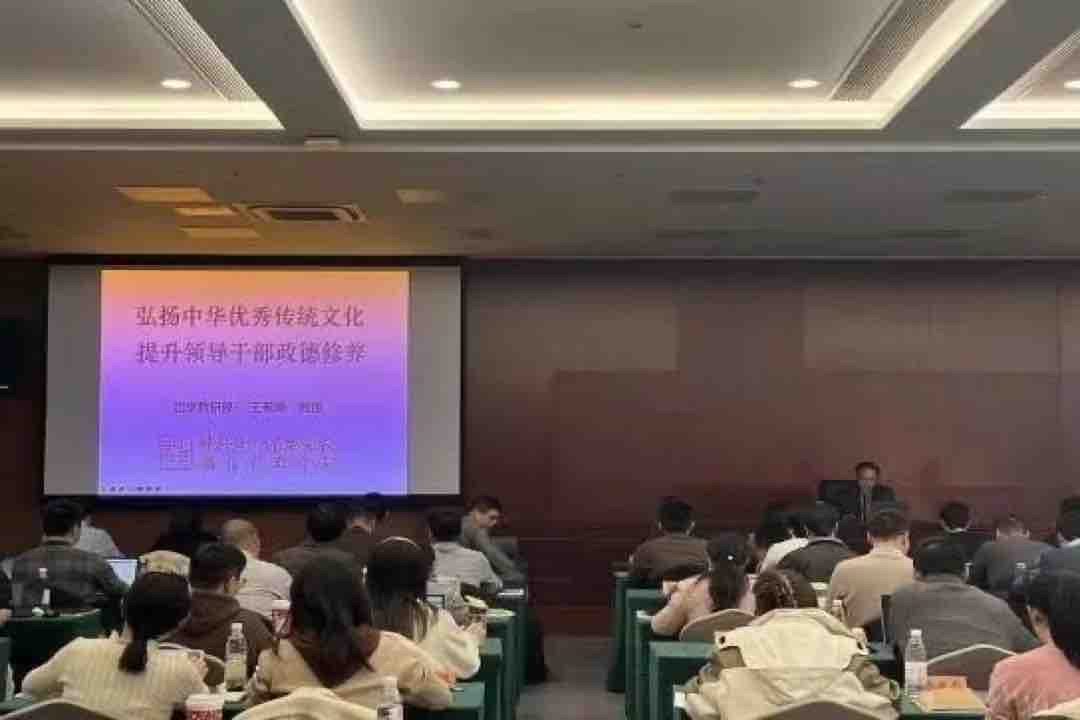 11月25日下午,研修班全体成员聆听了中共浙江省委党校哲学教研部,硕士生导师,浙江省哲学学会理事,浙江省委党校领导科学研究所主任王希坤教授《弘扬中华优秀传统文化提升领导干部政德修养》的报告。王教授深入浅出地介绍了政德修养的重要性和传统文化对干部修养的作用。王教授指出政德修养的核心在于“心”。他引用心学的理论,阐述了政德修养与心智发展的关系,政德修养需要通过正确认识自己的内心世界,了解自己的欲望和动机,从而调整和提升自己的行为准则。王教授引用传统文化中的内圣外王的理念,阐述了内圣修养与外王修养的重要性。他指出,党员干部在修养过程中,不仅要注重内在的道德修养,还要通过外在的行为举止,树立良好的形象和榜样。只有综合内外的修养,党员干部才能够更好地服务于人民群众,推动社会的发展。